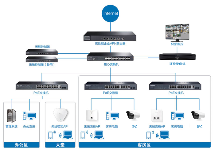 宾馆酒店内线电话交换机,客房分机前台总机 ,客房电话与房间号码一致,前台客房通话免费,打出电话计费,客房定时叫醒闹钟功能,提升宾馆酒店形象档次,方便管理服务